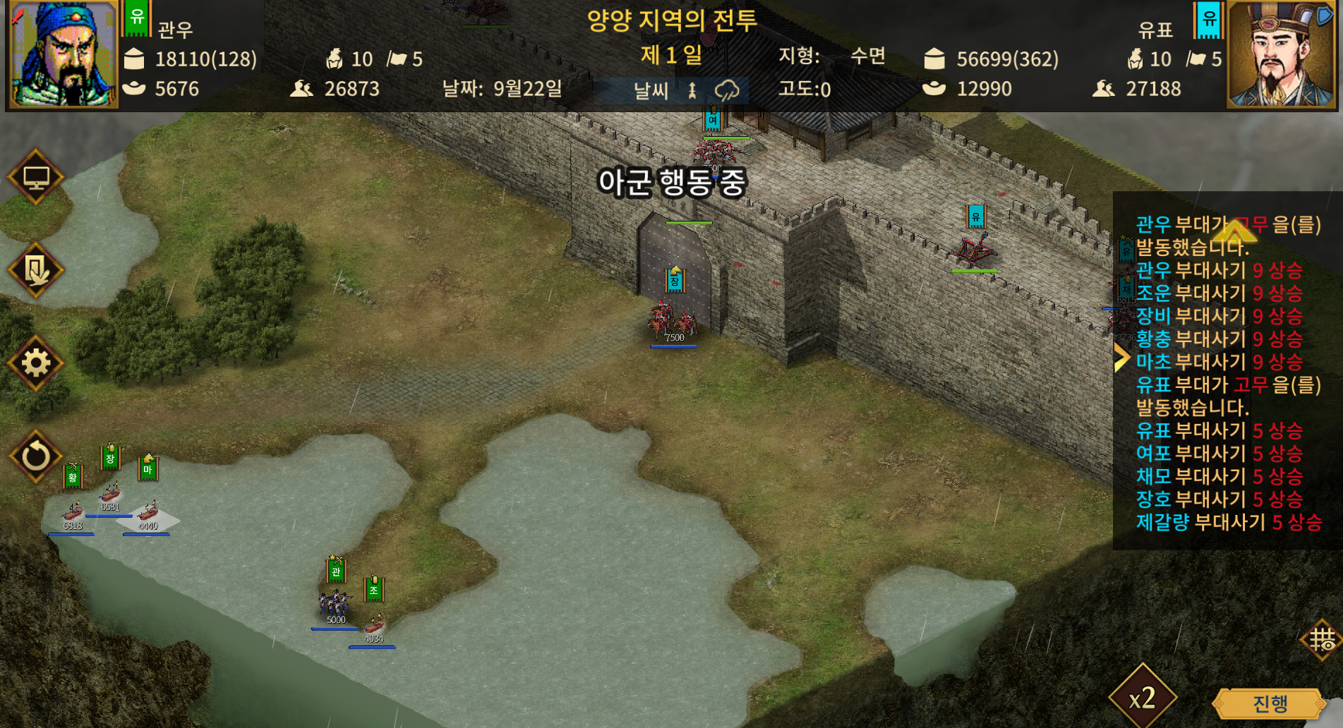 드디어 제갈량이 있는 유표의 본진과 양양에서 전투 개시