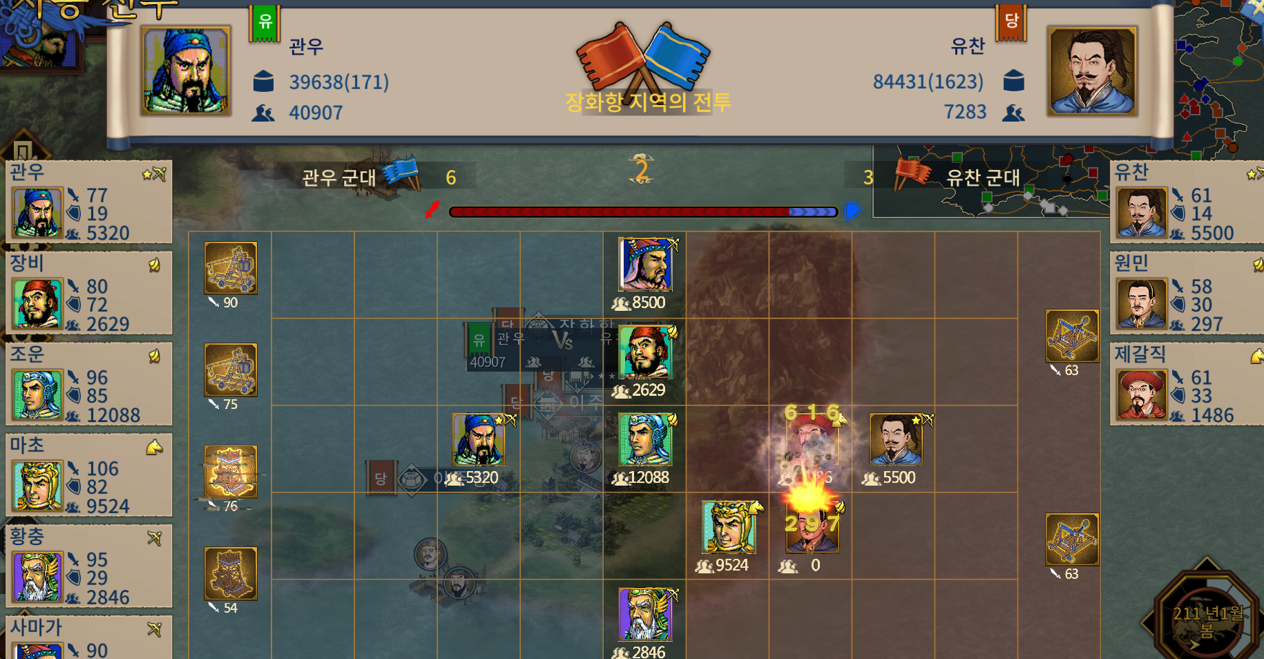 이제 성 하나가 남았는데, 별동부대로 우리 편을 불러들이는 효과도 많은데, 이 당모 세력은 삼국지에서 이름 없는 그런 사람인지라 우리 편도 없고, 아이템이랑 패잔병이나 많이 획득하면 좋겠다.