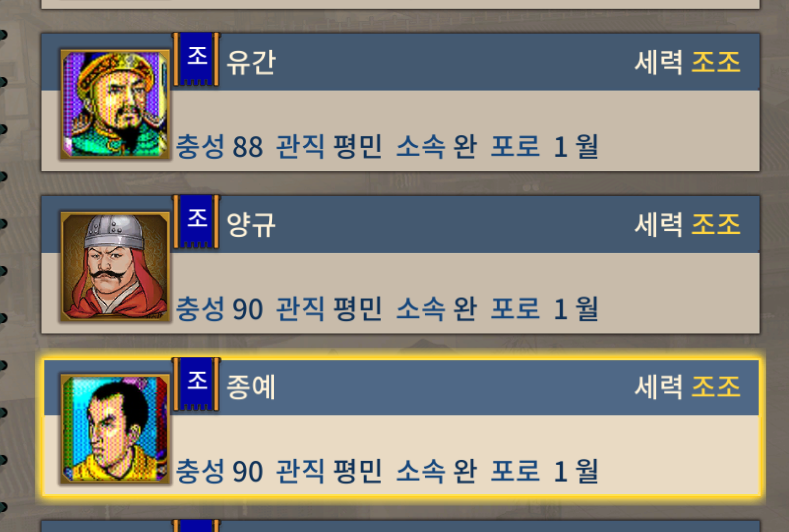 의연 때문에 좀 언발란스 하지만 황충이 이미 조운-황충-마초 이렇게 되어서 위연을 그냥 이쪽으로!