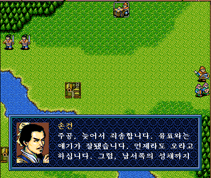손건이 늦게 전장에 나타난다. 그리고 남서쪽 성으로 가라고 한다.