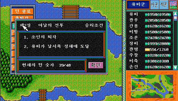 유벽은 내가 조정하지 못하므로 유벽이 몇타 쳐주기를 바라면서...유벽을 살리기는 매우 어렵고 그렇게 해도 우리 군대에게 도움이 못된다. 다만, 유벽이 너무 불쌍한 인물이어서 좀 아쉬움은 남는다. 물론 전장에서 퇴각하는 것으로 나중에 우리편으로 합류한다!