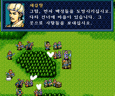 백성들은 동쪽으로 빨리 피난하면 좋을 것 같고, 우리 부대는 기마병이 둘밖에 없어서 불가피하게 숲에서 승부를 걸어야 한다.
