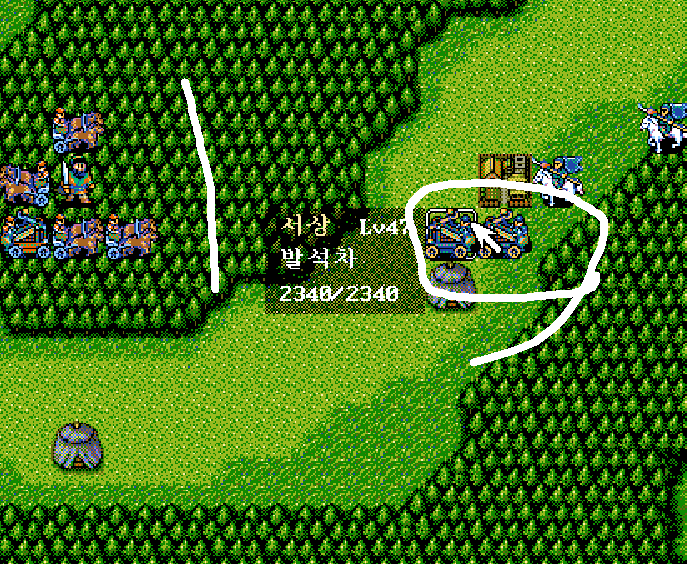 이제 숲에서 발석거만 제거 하고 그 다음에 기마병을 제거 하면 될것 같다. 잘 되고 있다.