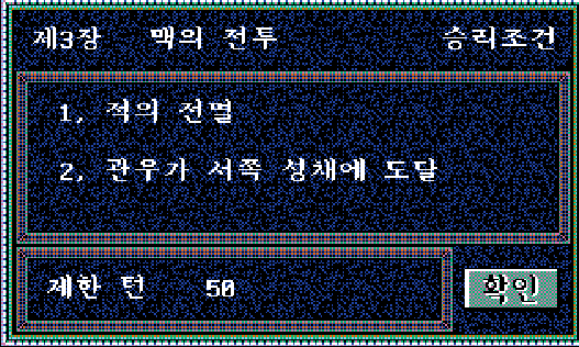 승리조건은 적을 거의 전멸시키면서 관우로 하여금 성에 도착하도록 할것이다!